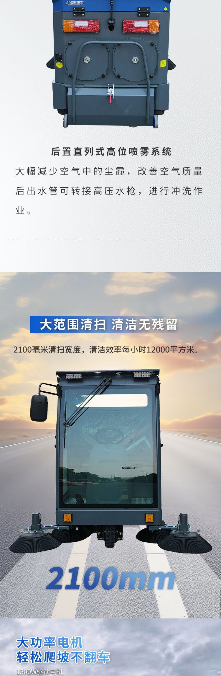 耐特达S8驾驶式扫地车集扫、吸、喷水、集尘于一体工作高效。喷水装置可在清扫过程中喷水降尘,免去尘土飞扬的局面,超大集尘箱,利用率达99%,免去清扫来回倾倒垃圾的麻烦;驾驶室方向盘设计,操作简单易上手。